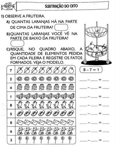 Contribuição:ATIVIDADES DE MATEMÁTICA, PARA 1º E 2º ANO EF, ASSUNTO SUBTRAÇÃO DO 8,TERMOS DA ADIÇÃO, AGRUPAMENTO DO 6.